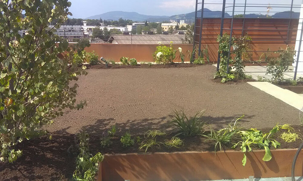 Unser jüngstes Kerngebiet ist die Lebensraum-Schaffung in verbauten Gebieten. Grüne Dächer sind Lebensräume für Pflanzen und Tiere, die dort Rast-, Futter- und Nistgelegenheiten finden. Der Regenwasserrückhalt trägt zur Entlastung unserer überfüllten Kanäle, Bäche und Flüsse positiv bei. Begrünte Dächer bringen auch eine 5%ige Ertragssteigerung von Photovoltaikanlagen.